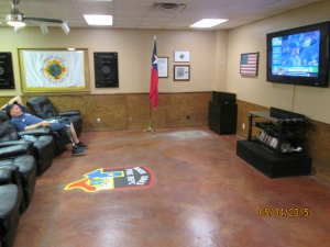 The Day Room has seating for six personnel and includes a large TV, video games, and surround sound